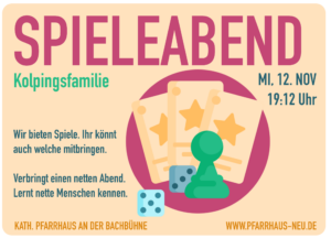 Die KjG lädt alle Kinder von 8–14 Jahren herzlich zum gemeinsamen Plätzchenbacken ins Pfarrhaus Neu ein. Gemeinsam möchten wir einen gemütlichen vorweihnachtlichen Abend verbringen, Teig kneten, ausstechen und…